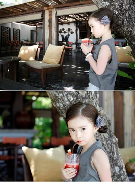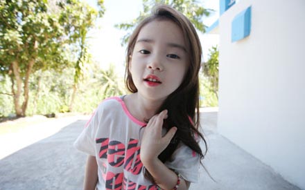 也许你对她的面孔早已熟悉,只是不知其名。事实上去年这位小姑娘就已在网络走红,这位超萌小姑娘是一家韩国网拍模特儿,年仅7岁,昵称Wonei。