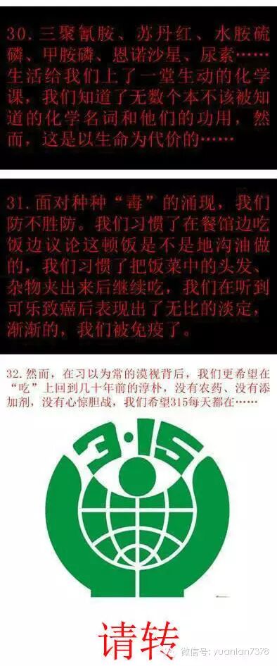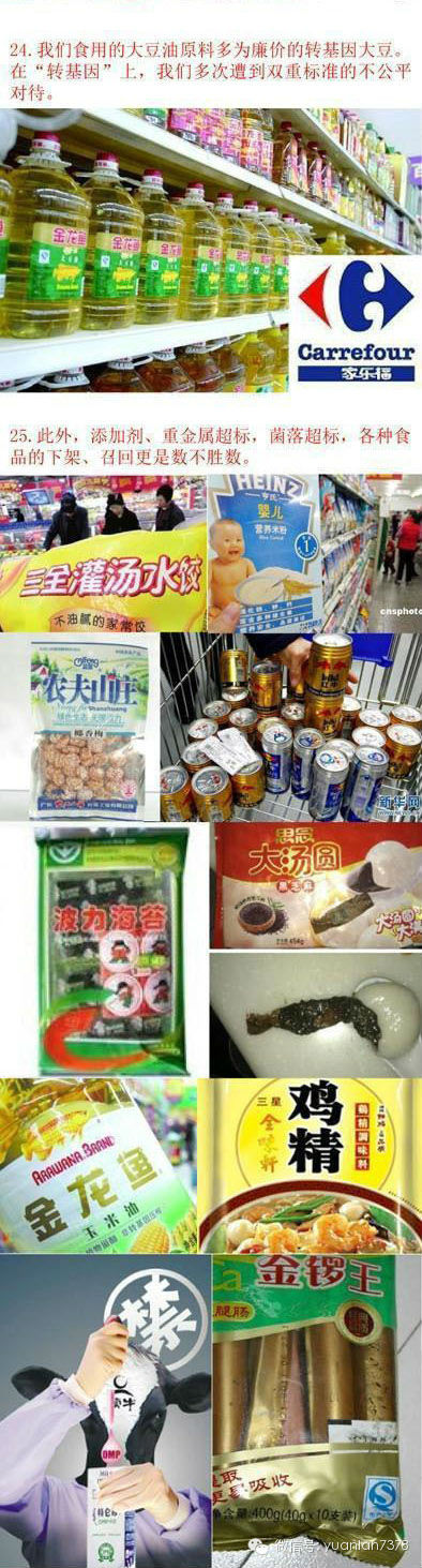 从染色食品到神奇羊肉,从苏丹红鸭蛋到假鸡蛋,从地沟油到石蜡米,从避孕虾到激素蟹,奸商们使我们成为人造毒食技术最先进国家,国人餐桌变成化工原料堆填区,国人的肚子也愈来愈像化工厂。如今科技上天入海都行,却无法解决最基本食品安全问题,多么悲哀。