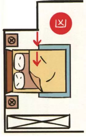 有些人为营造气氛而将床斜放且不靠墙,或为了闪避横梁而将床头悬空。床头不靠实墙,或调头睡,会造成睡眠品质不良、思想叛逆、怪异及与人沟通能力不良。