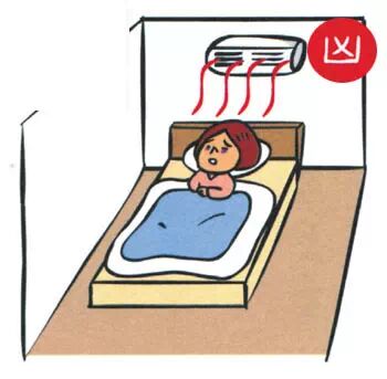 床位安置在空调下方,寒气不断吹向头、肩、颈,加上人在睡眠状态时,毛细孔会略微放开,轻者经常感冒,重者会造成头、肩、颈的神经紧张、肌肉僵化。