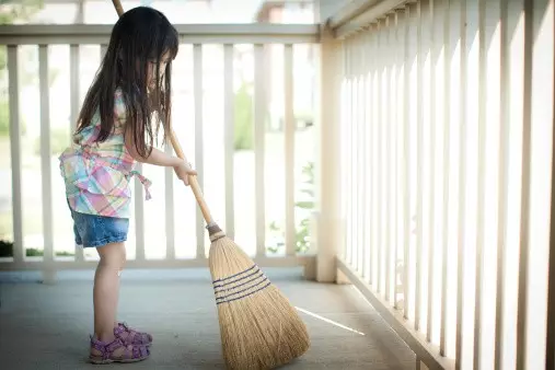 孩子到了五六岁,就要让他扫地擦桌子,并告诉他如何节省用电,还可以教他们整理自己的房间;