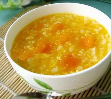 ●做法: 1. 南瓜150克, 去皮切成小丁; 3. 小米100克、糯米50克, 淘洗干净后混合置于碗中,用清水浸泡1小时,容易黏稠。 4. 将小米、糯米、南瓜倒入高压锅中,加入5倍的清水; 5. 盖上锅盖,大火烧上汽后转小火,再压制10-15分钟即可。