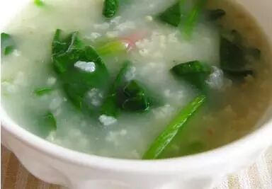 ●做法: 1、菠菜择洗干净,入沸水锅中焯一下,捞出切末。 2、大米洗净后,放入锅内,加适量的水煮成粥。 3、出锅前,将切好的菠菜放入,搅拌均匀,再慢煮3分钟,取米粥上层的汤即可。