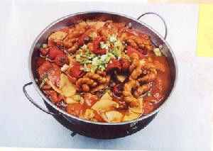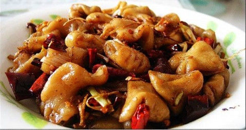 首先教你洗肥肠: 诀窍: (1)买生肠子要拣颜色白些的买,一则干净,二则好洗; (2)洗前,最好用碱抓一下。没有碱,用盐使劲抓抓;我喜欢用剪刀剪成一节一节,这样,灌水时,不累人;翻肠子有诀窍,稍翻一头,接在水龙头上灌水,很快就翻过来了,我主要把黑或一些小淋巴节拽掉,肥肠嘛,油除的太干净,就瘦了,口感不好,然后,再用同样的法子,翻过来; (3)绰遍水,倒出肠子,洗干净; (4)煮时(小火哈 ~~~)丢两颗八角,放拍好的姜块,料酒,水至淹没肠子,有人喜欢煮肠子时, 就加酱油,我喜欢炒时再上色(个人所好)。 (5)煮时,记得翻翻,煮的程度(记得中途放葱段 ~)以筷子能戳通即可,煮过头了,肠子没咬劲,不够透了,嚼不动,总之,口感,是肠子重要的......环节。 配料:肥肠10斤,菜油2斤,红糖3两,姜葱,盐,味精,卤料,郫县豆瓣半斤,卤料(八角茴香桂 皮等等,干杂店有专门的卤料包,用纱布包好的,最方便了) 第一道工序就是洗肥肠。言归正传,洗肥肠其实是一个体力活。要先用热水漂一次,然后,放少量 盐和面粉,揉10分钟,再翻过来,用刀刮掉里面的油(外面餐厅卖的肥肠 95%都没有刮过油),刮 油后再用热水漂一次,最后,用面粉再揉一次,洗干净就行了。10斤肥肠,一般要洗两个小时。 第二道工序就是切,把肥肠切成4CM左右的段,干辣椒切成两节,姜切片,葱白切4CM的段。 第三 道工序就是烧了。锅内放油(一定要菜籽油哈,色拉油也将就,万万不可用PIG油)。待油至 8 成热就放入红糖,把糖熬化了之后放入豆瓣。等豆瓣煎成金黄色就 放入姜片葱节和 适量盐,闻 到葱香味后就放入肥肠翻炒,要让肥肠都粘上糖汁。然后放入热水,水完全淹没肥肠即可,放入卤 料包和干辣椒。然后,盖上锅盖焖90分钟就OK啦,中途记得加水哦,不要搞成干煸哈。放了糖就容 易粘锅,要多翻动。出锅的时候放味精。 切记,一定要用菜油和红糖,焖到一小时的时候把卤料包取出来,不然会苦的。芫蓿要放在碗里, 不要放锅里哈。 烧肥肠的汁,可以留着烧牛肉哦。 红烧肥肠做法2: 原料:用料:猪大肠500克,青、红椒共150克,水发木耳50克。 调料:葱1棵,姜1块,蒜3瓣,料酒、生抽各0.5汤匙,精盐3茶匙,味精、香油各1茶匙,淀粉3茶 匙,花生油1汤匙。 制作: 1、先将猪大肠洗净,煮至八成熟,改刀成三角片,用料酒、姜腌渍。 2、木耳、青红椒改刀三角片,姜切片,葱切段,蒜拍成茸。 3、锅加底油下葱、蒜炝锅,加青、红椒、木耳、精盐、味精炒熟出锅。 4、锅加底油,下入猪大肠爆炒,加入精盐、生抽、料酒后,放入炒好的青红椒,木耳翻炒,放入 香油,勾芡出锅。 肥肠粉: 1、采购了一些熟肥肠,取了一段,切成小片,又洗了四片生菜叶,切丝。 2、用锅煮粉至熟。 3、炒锅上油加热,下花椒,变紫后取出(花椒变紫,实难掌握),下肥肠,炒。肥肠是熟的,不 可多炒,否则会老,稍许下葱花、姜丝,下一些麻油,辣椒同炒,加料酒。 4、放入生菜炒几下,加热水,放入调料鸡精、盐、少许醋,烧开后,放入煮好的粉条(我还放了 几个肉丸子,成都可没有啊),稍煮后,加花椒粉与胡椒粉,拌匀出锅。 肥肠粉做法二: 正宗的肥肠粉选用的是上等红薯粉、菜子油及干红辣椒、花椒等原料,锅汤则是用肥肠、猪骨头 等,以及多种佐料熬制而成。红油飘香,霉干菜、榨菜末星星点点,炒黄豆焦黄浑圆。粉条糯软, 满口留香。夹起颤巍巍的肥肠送入口中,只觉卤香细腻,滑爽耐嚼。 做法: 先将泡好的红薯,放进沸腾的肥肠汤锅里,来回荡几下,捞起来后,倒入已放好肥肠和调料的大 口碗里,最后,从汤锅里舀一大勺沸汤,沿粉丝浇淋下去,再往碗里放几粒花生和几抹葱花即可。 溜肥肠: 主料:猪净熟肥肠250克。 辅料:水发玉兰片10克,水烫油菜15克,水烫胡萝卜10克,水发冬菇10克。猪清油、酱油、醋、 花椒水、绍酒、味精、葱、姜、蒜、香菜梗、鸡汤、湿淀粉。 特色:滋味香浓,肠肥软烂。 操作: 1、把熟肥肠切成斜刀片(约一分半厚)。将水发玉兰片、胡萝卜切成片。油菜切成段。葱切成 象眼块。姜、蒜切成末。香菜切成段。冬菇切两半。 2、用酱油、醋、花椒水、绍酒、味精、湿淀粉、鸡汤对成汁水。 3、勺内放猪清油,油热八成时,将肥肠倒入勺内冲炸片刻,倒入漏勺控净油。 4、勺内放少量油烧热,用葱、姜、蒜炸锅,放入玉兰片、油菜、胡萝卜、冬菇略加煸炒,接着将 冲炸好的肥肠倒入勺内,将对好的汁水烹上,再放入香菜段,颠炒几下出勺即成。 溜肥肠家庭版: 材料: 1、猪大肠500g 2、干辣椒100g(根据个人口味适当调整) 3、花椒20g(根据个人口味适当调整) 4、姜片、蒜片少许 5、料酒、盐、酱油、糖、鸡精适量 做法:饭店一般都要过油,最后勾芡的,偶呢,喜欢偷懒,而且油锅,那个,有些怕怕哈~~~~~~ (1)起锅上油至7-8成热时放入姜丝,洋葱PP焙出香味,滴些酱油,继续焙; (2)放肥肠,青椒,大火翻炒,略放糖,盐至青椒断生即可。偶不喜欢勾芡,主要是勾的不好, 一旦过厚了,就粘粘糊糊,不够清爽,反而画蛇添足。 火爆肥肠: 做法:猪肥肠洗净,入沸水中过一下,起油锅,将山奈,八角,老姜,草果,茴香炒香,加水酱油烧开, 放入肥肠,卤熟至酥软,捞起,并将肥肠切成小段. 永川豆豉:用油煎好备用 准备洋葱少许 青椒少许(看个人爱好) 干海椒一两 蒜片 老姜一两 花 椒 黄豆炒熟 花生炒熟待用起油锅,将蒜片,老姜花椒下锅爆香,放入切好的肥肠爆炒,炒香后加黄 豆,花生,紧接着放洋葱青椒,大勺豆豉,味精,鸡精炒匀装盘即可。 火爆肥肠做法二: [