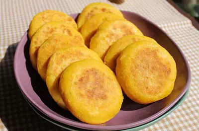 3. 不沾锅倒少许油烧至五成热将饼放入,中小火煎至金黄,翻面煎至金黄即可。