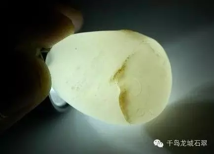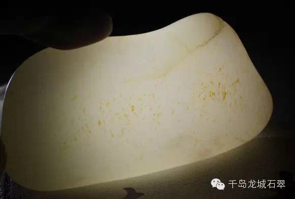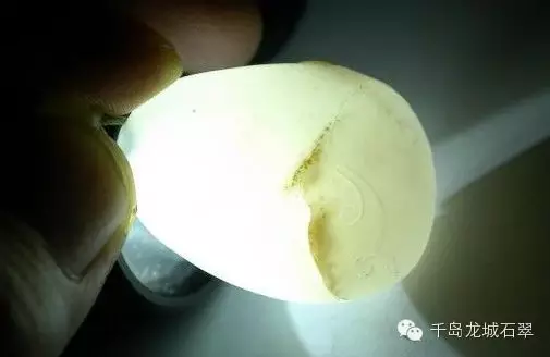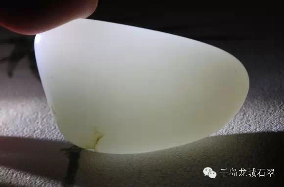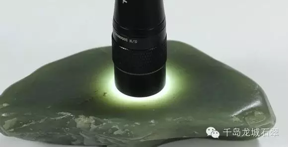 手电筒光源紧贴玉石表面直射,主要是看玉石的质地、浑厚度。