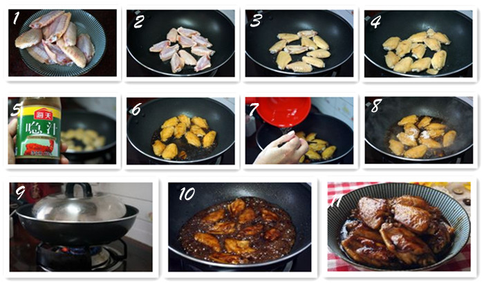 材料:鸡中翅、清水、姜片、喼汁、砂糖、油