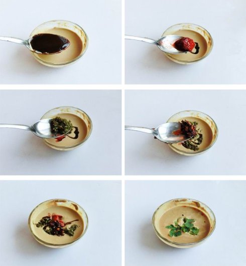 调料:辣椒油、芝麻酱、甜面酱、花椒油、韭菜花、腐乳
