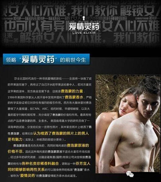 费洛蒙已经被证实有非常优秀的吸引效果,生物学家WININFRED教授通过实验发现,有75%的接受实验的人,在经常闻过费洛蒙香水后,发现自己在拥抱接吻技巧和性生活方面有了提高。