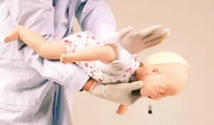 可以采取另外一个姿势,把孩子翻过来,躺在坚硬的地面或床板上,抢救者跪下或立于其足侧,或取坐位,并使患儿骑在抢救者的大腿上,面朝前。抢救者以两手的中指或食指,放在患儿胸廓下和脐上的腹部,快速向上重击压迫,但要很轻柔。重复,直至异物排出。