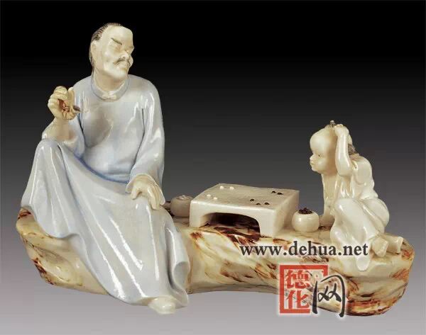 德化民间艺匠将雕塑与瓷艺结合,大多以宗教为主题,所做物像仪态生动,不求色彩之华丽,只求单纯、素洁、典雅之美。德化瓷塑极为著名,白瓷观音、达摩等塑像,胎釉浑然一体,不仅面部刻划细腻,衣纹深而洗练,而且都能很好地表现人物的性格。此类作品往往印有名匠何朝宗、张寿山、林朝景等人的印记,明代工匠高超的瓷塑技艺,一直为后世风范。《福建通志》和《泉州府志》都称其为“善塑瓷像,为僧伽、大士,天下共宝之”。