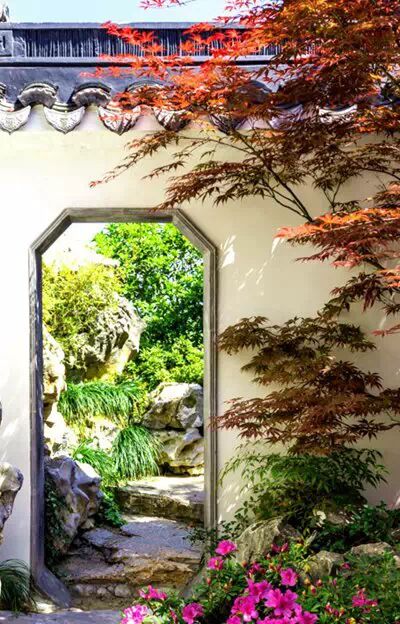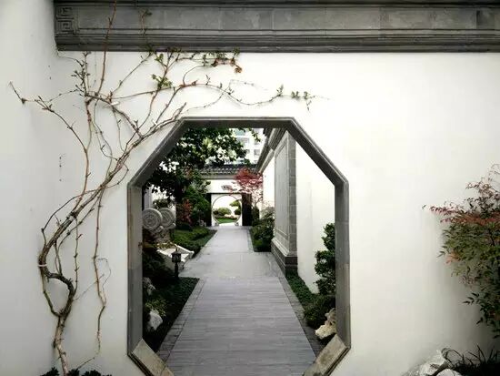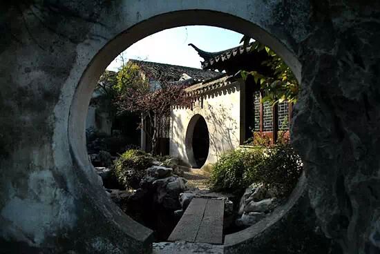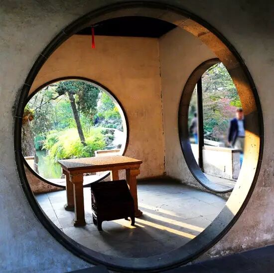 圆形门在苏州园林中最为常见。圆形门模仿圆月而筑,是月亮崇拜的物化。给人以饱满、活泼和平衡感。中国人喜欢满月,满月在整个循环周期中代表完整或完美,因此人们总是把满月与团圆联系在一起。佛教中的满月也是美好和安详的象征。月华如水,更符合中国人的诗意情结。