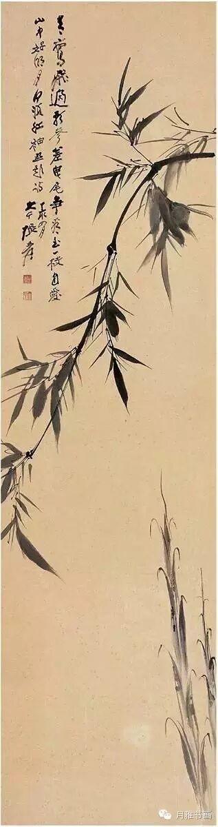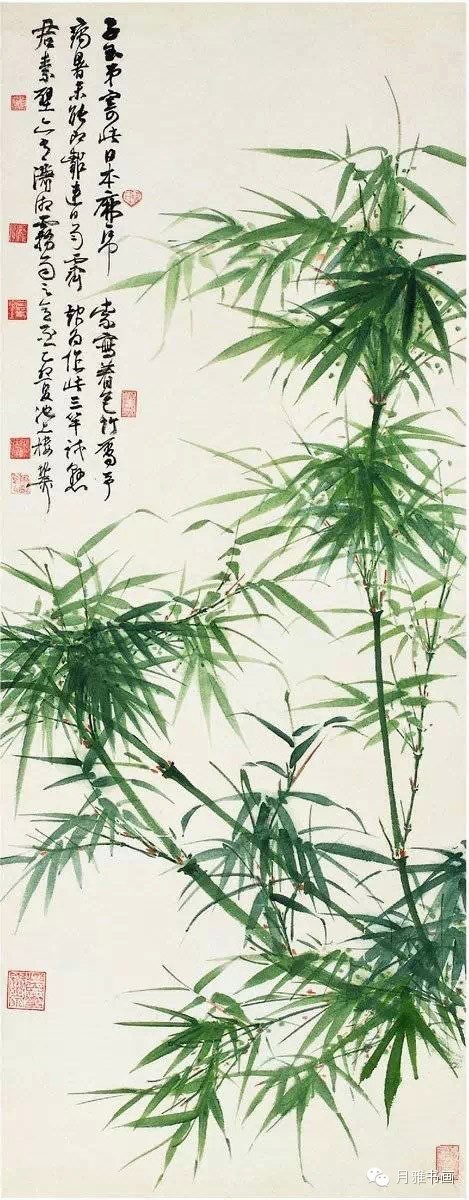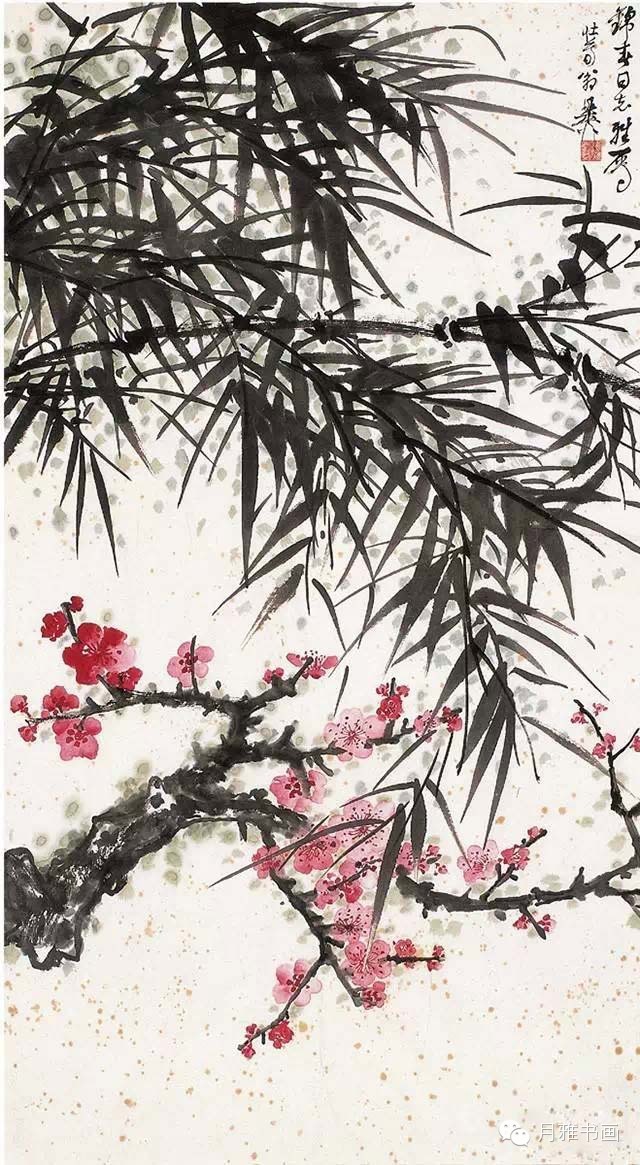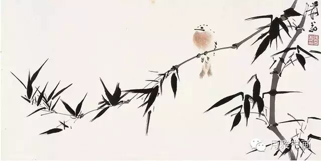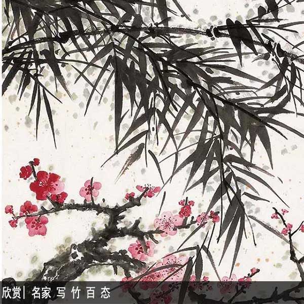 竹子亭亭玉立,婆娑有致,不畏霜雪,四季常青,且“未出土时先有节,及凌云处尚虚心”,有君子之风。画竹的关键在于对竹枝叶的取舍、概括,用笔自然、一气呵成,表现竹的无限生机,浓淡相映、妙趣横生。
