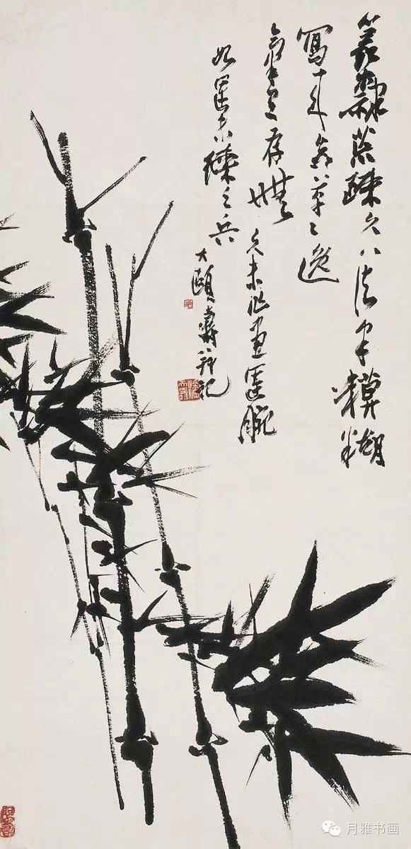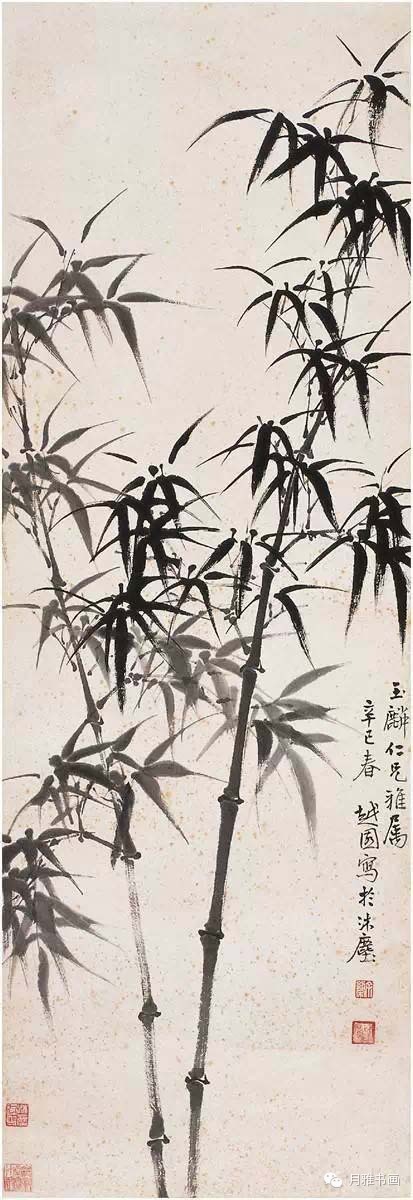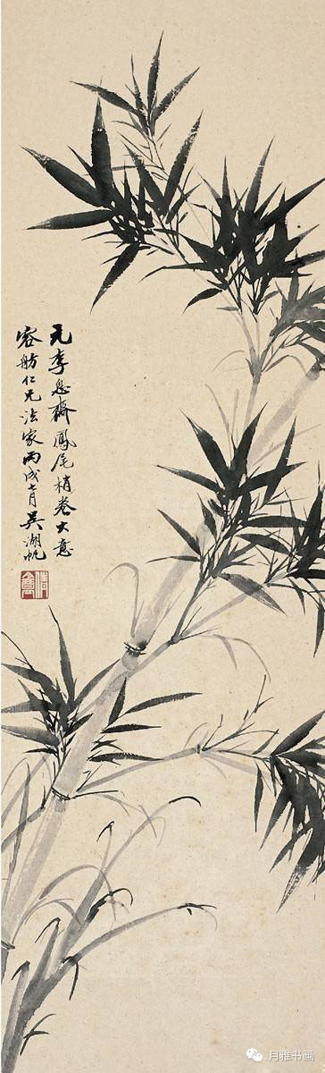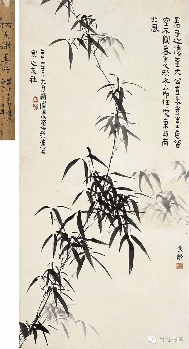 国画中的竹常以水墨表现竹的形象与气韵,墨竹画在写意花鸟画中占有重要位置,其笔墨特征是以书入画、骨法用笔,画竹要“成竹在胸”,才能在运笔用墨时挥洒自如,表现出竹的神韵与气节。