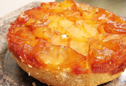 13、取出后,倒扣20分钟,锅有一点粘,用勺子勺一下就可以轻松脱模;