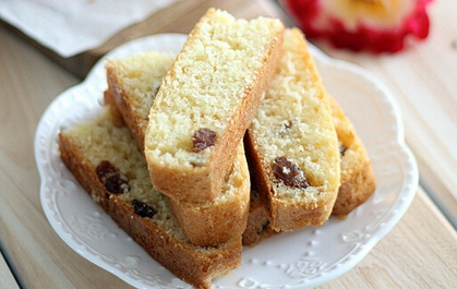 面粉80g、鸡蛋4个、葡萄干30g、色拉油适量 、盐适量、牛奶8勺 酵母5g、白糖50g;