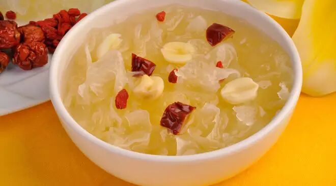 银耳每100克干品中含蛋白质5~6克,脂肪0.6克~3.1克,碳水化合物79克,粗纤维2.6克,钙380毫克,磷250毫克,铁30毫克,还含有维生素B2、胡萝卜素、胶质蛋白等人体必需的营养物质。嫌炖起来麻烦的朋友直接上淘宝搜嘉曼蝶普拉惠靓肤精油睡前按摩即可消除各种斑。