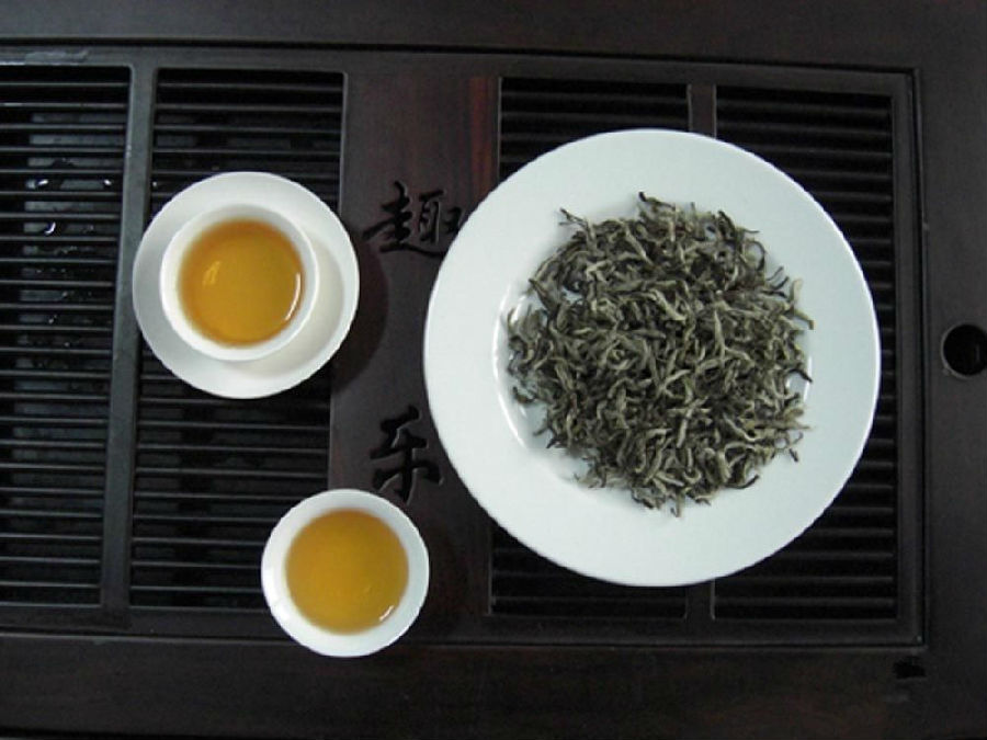 是一种轻微发酵茶,选用白毫特多的芽叶,以不经揉炒的特异精细的方法加工而成。白茶的鲜叶要求“三白”,即嫩芽及两片嫩叶均有白毫显露。成茶满披茸毛,色白如银,故名白茶。白茶因茶树品种、采摘的标准不同,分为芽茶(如白毫银针)和叶茶(如贡眉)。采用单芽为厚料加工而成的为芽茶,称之为银针;采用完整的一芽一二叶叶背具有浓密的白色茸毛加工而成的为叶芽,称之为白牡丹(大白茶品种树,以采自春茶第一轮嫩梢者品质为佳)。白茶的制作工艺很特别,也是最自然的做法,它不炒不揉,既不像绿茶那样制止茶多酚氧化,也不像红茶那样促进它的氧化;而是把采下的新鲜茶叶,薄薄地摊放在竹席上置于微弱阳光下,或置于通风透光效果好的室内,让其自然萎凋。晾晒至七、八成干时,再用文火慢慢烘干即可,由于制作过程简单,以最少的工序进行加工,因此,白茶在很大程度上保留了茶叶中的营养成分。在原产地的百姓自古就有用白茶下火清热毒消炎症、发汗去湿舒滞避暑、治风火牙疼高烧麻疹等杂疾。白茶功效具有三抗(抗辐射、抗氧化、抗肿瘤)三降(降血压、降血脂、降血糖)之保健功效,还有养心、养肝、养目、养神、养气、养颜的养身功效。