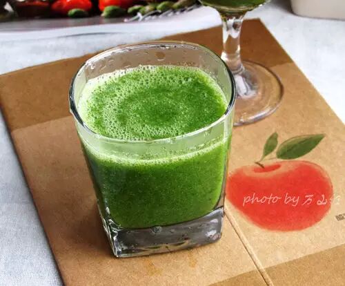 4、打好后,用打发的淡奶油装饰即可。我没有加水,果蔬汁很浓稠,奶油的花在上面漂浮着。喜欢稀一点的可以适量加点开水等液体。