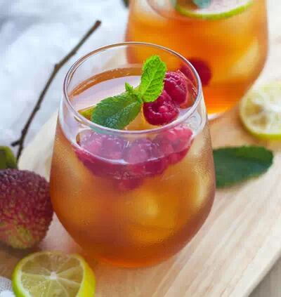 B凉水(600ml)、B细砂糖(300g)、B新鲜薄荷(60g)、C覆盆子(适量)、C荔枝(适量)、C青柠檬(半颗)
