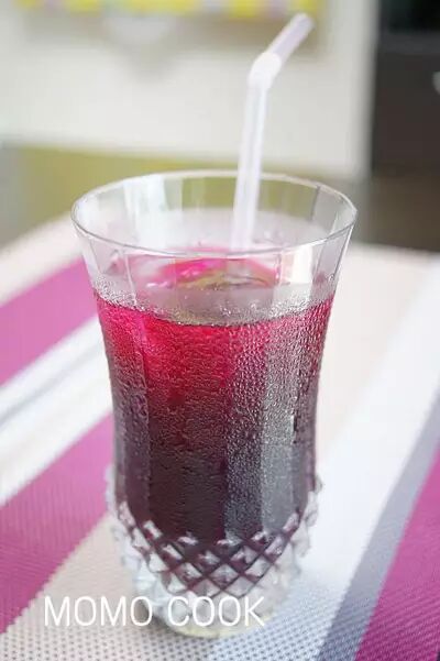 5、喝的时候,加上冰块,喜欢酸点的再加点柠檬汁,喜欢甜的可以再加点糖,总之味道自己来调节就可以.清凉可口,散热解暑,还有紫苏特有的香气哦。