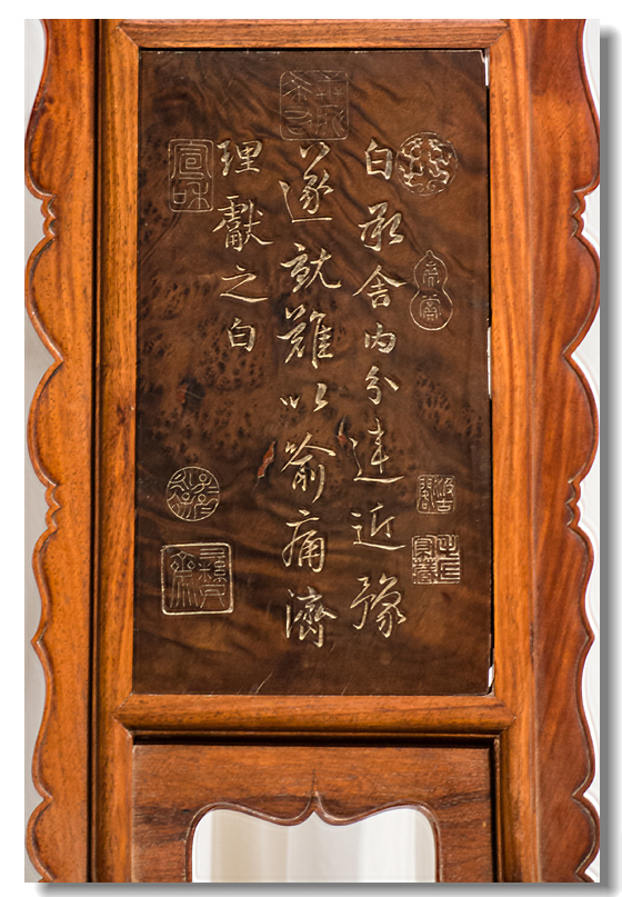 黄花梨镶大理石刻诗文四出头官帽椅 明末清初,此椅尺寸阔大,但细节处理到位。背板刻诗文又平添几分雅致。