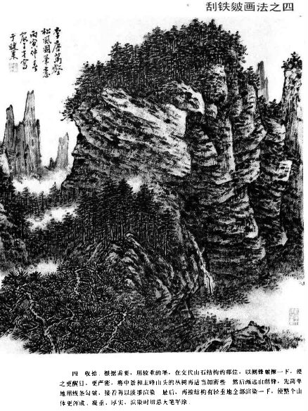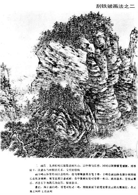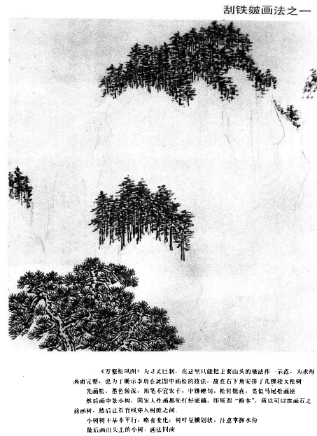 牛毛皴:牛毛皴法,如同象披麻皴法,其线条细而繁密,如同牛毛,用笔线条略呈枯、毛、涩、渴状态,可层层复加积墨而成,或以淡墨烘染,或以焦墨提醒,此法最易表现草木茂密的山峦,苍苍茫茫,回味无穷。