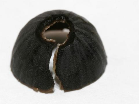 莲子的种皮很厚,为了比较顺利的发芽,需要进行简单的处理。首先请分辨碗莲种子的两端,一端是有小小的凸起,一端是小小的凹点,要处理的是凹点那一端。