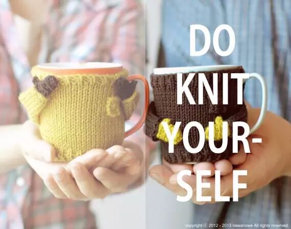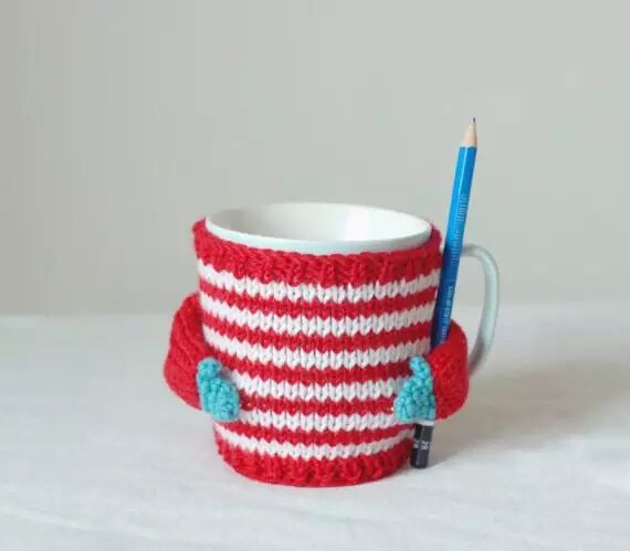 咖啡杯感冒了,因此,要解决这个问题。一个叫Etsy的店铺将手工针织服装套在了各种小餐具上,还加上了手臂戴手套,萌萌哒~~