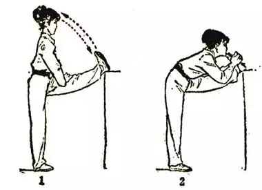 就像晨练的人拉伸大腿一样,找个阳台什么的,腿往上一放,不同的是,上半身也要前倾,这样上半身的膀胱经,督脉也能拉到。