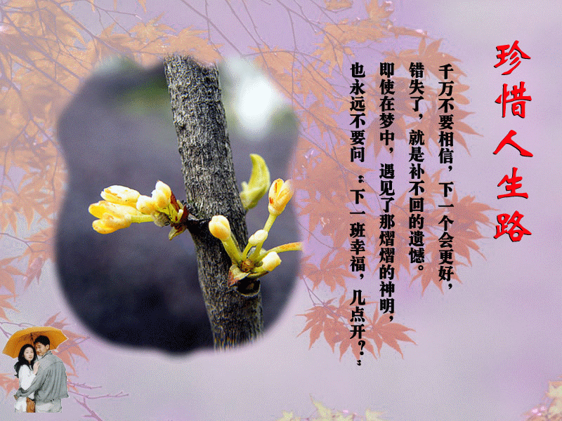 天意 [ft=#666600,5,楷体_gb2312]珍惜生命。生命是最宝贵的,人生只有一次。生命并不仅仅意味着轻松愉快,活的开心时要珍惜,即使是最危难之时,也要挺得住。做人真的很苦,柴米油盐,七情六欲,酸甜苦辣,生离死别。人打从出生到老去,乐的时候少苦的东西多,一辈子寻寻觅觅,兜兜转转,等到有一天歇下来,回头看看走过的路,才顿然发现自己浪费了多少的青葱岁月去苦苦追求的原来就是一直以来为了追求所谓的梦而放弃的东西。人,真是一种不可理解的动物,得到的时候不懂得珍惜,失去了才觉得可贵。没有星星的夜空,他们觉得寂寞;满天星斗的晚上,他们说少了个月亮少了多少的诗意;可等到月亮爬上来,把所有的星星淹没了,他们只能举杯邀月,对影成三人,又是何等的孤独,何等的凄楚。[/ft]