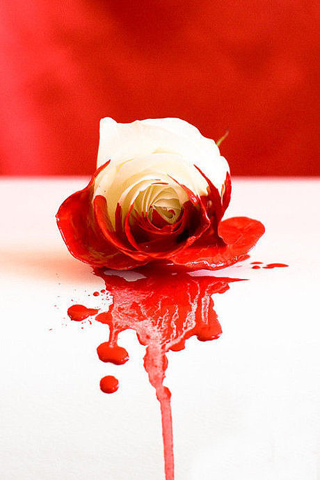 10、世上本没有红色的玫瑰。是谁,用茎上的刺割破手腕,鲜血滴答,和着眼泪,染红了这雪白的花蕾。从此,每当一颗心碎,地上便盛开一朵血红的玫瑰。