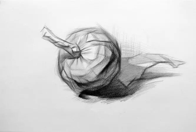 苹果是素描静物中最神奇也最常见的物体之一,为什么说是最神奇的呢,因为很多同学,画过很多个苹果还是掌握不好,今天我们就带大家一步步的去画出一个侧立的苹果素描静物。
