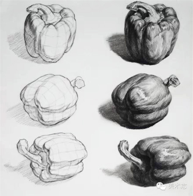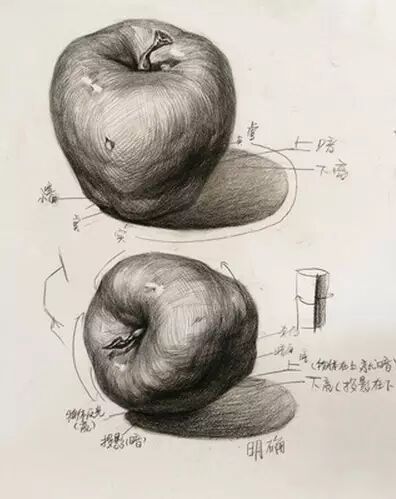 (其实只是便于理解苹果的型,重在理解!理解光影是跟着形体走的,这点很重要!)