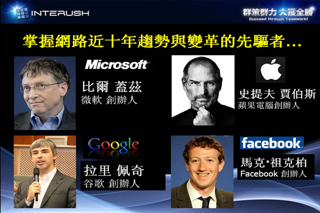 ——我们看看掌握网络近十年趋势与变革的先驱者,并非什么国家领导人,而是这些掌握半个世纪的社会潮流和经济变革的人。