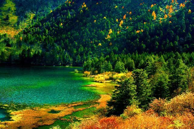 七色海 是一处湖水与温泉交融的高原湖泊,周围由森林、草甸环绕,清雅幽静,湖水清澈透明,随阳光天气之变化湖水色调各异。