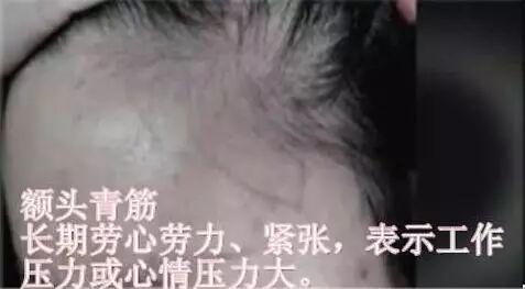 2.额头有青筋,提示长期劳心劳力,紧张,工作压力或心情压力大。