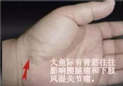 7、拇指关节下呈现青筋凸起或扭曲,表示患有冠状动脉硬化、心肌劳损。