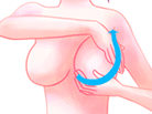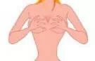 4、一手按住腋下部位,另一只手手掌托住一边乳房并轻轻向上推。