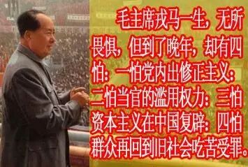 毛泽东声明自己一生只办了两件事,一是建立了国家,二是搞了文革。不管文革如何评价,其反修反腐的决心与信心,就是荡涤了所有的贪官污吏,就是实现了政治的清明,就是让人民感受到了自己的力量。这三样现在又如何描述与评价呢?毛泽东时代的官员,是老百姓放心的官员,即便犯了错误,老百姓都原谅求情;现在的官员,吃喝嫖赌一样不沾的有几个,犯了错误的老百姓会不会吃你的肉?