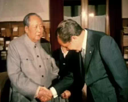 下图:毛主席与美国总统尼克松