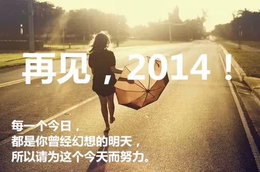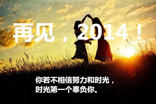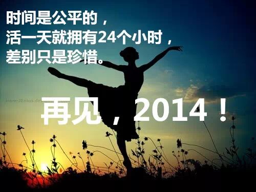 2014年~感谢这一年的收获,这是全部汗水当之无愧的奖赏;感谢这一年的辛苦,这是成长路上不可或缺的阅历;感谢这一年的尚不如愿,这是下一年必须努力的理由。2014,或许走得不够快,但我一直不曾停下脚步;2015,或许有些紧张,但我愿以百倍努力迎接你。再见,2014;你好,2015!!