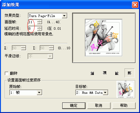 然后设定画面帧和延迟时间如图所示: