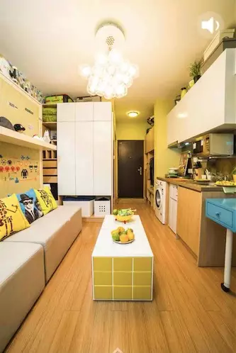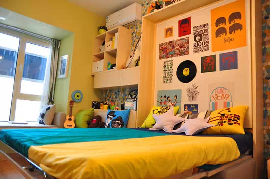 折叠起来的双人床,平时可以隐藏起来作为装饰墙。床头的衣橱,裤子、领带、袜子,上衣都有自己专属的“家”,它们帮有志成为单身贵族的你,自然而然地井井有条。