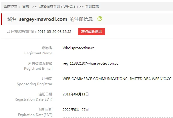 这是查询到的俄罗斯的官网2011年4月11号注册。