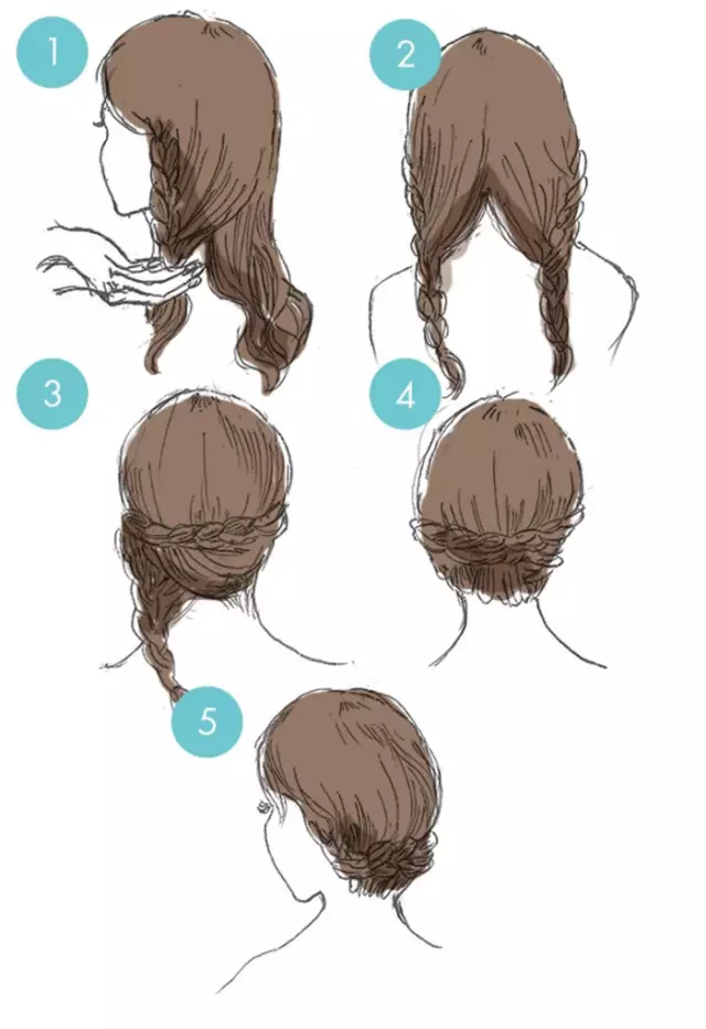 将长发对半梳开,两边用发绳扎起编成麻花,最后将两股麻花辫盘起绕成发髻。再配上一条素色长裙,萌妹也可以变身为气质型御姐。