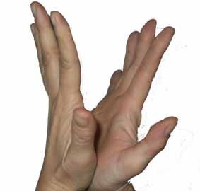 尺侧相扣,用两手外侧相击(手心向上,手指伸直,互相扣两手外侧)——治疗肩关节,膝关节。
