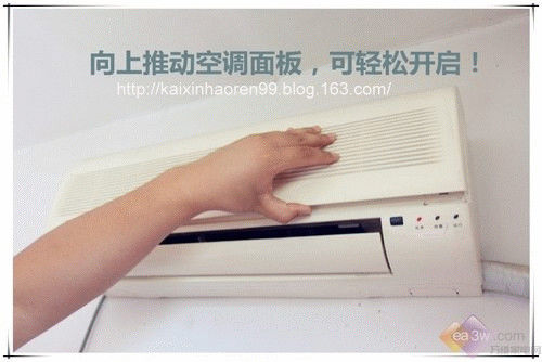 接下来,我们从空调面板左右两侧的扣手处,往上推面板,这样,空调面板即可轻松被开启。