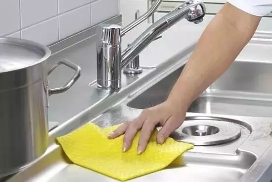 水池既要洗菜还要洗碗,容易沾染洗碗水中的油垢,如果没有专门的水池清洁剂,在有油污的地方撒一点盐,然后用废旧的保鲜膜上下擦拭,擦拭后用温水冲洗几遍,也能让水池光亮如新。水池的四周弯角和下水处可以准备专门的小刷子或者牙刷用细盐、肥皂水、清洁剂擦拭,下水处的水盖也最好用温肥皂水浸泡20-30分钟,达到理想的去污效果。