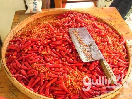 桂林属于是爱吃辣且能吃辣的城市,辣椒是少不了的,根据自身的口味逐渐磨合,而产生了拥有独特风味的桂林辣椒酱。桂林辣椒酱因其配料的不同,有各种不同的品种,像蒜蓉辣椒酱,豆豉蒜蓉辣椒酱等。